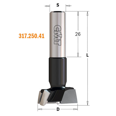 CMT 317.250.42 - CMT Orange Tools' industrial boring bits are crafted for professional woodworkers needing precise drilling solutions. These bits ensure clean and accurate holes in various wood types. Ideal for cabinetmaking, furniture construction, and other woodworking applications demanding high precision.