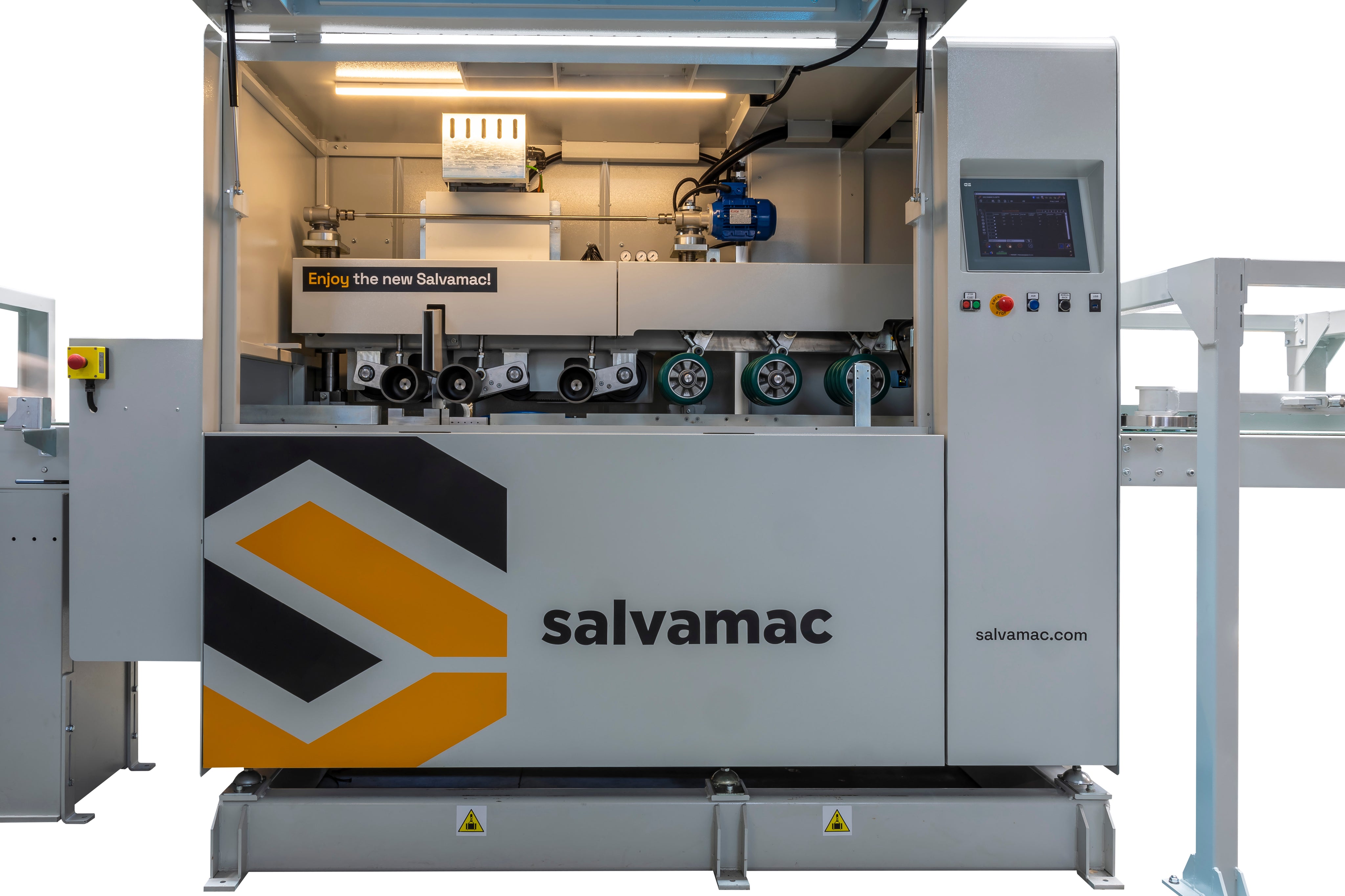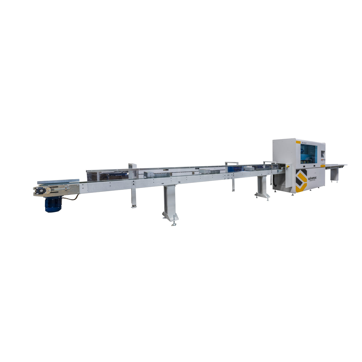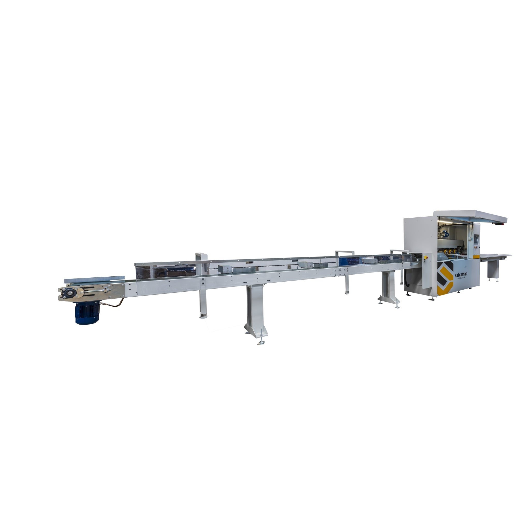 SalvaCut is an innovative high-speed optimizing saw designed for the optimization and elimination of wood defects. It features double traction with upper rollers and a lower feed belt with independent management. The two independent and interconnected Brushless feeding motors are engineered for faster accelerations and greater precision.