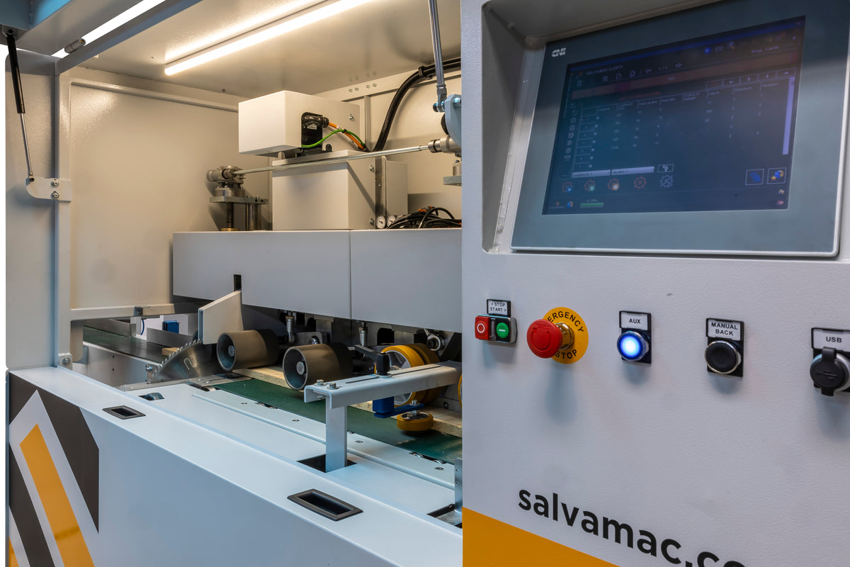 The SalvaCut represents the evolution of innovation in the field of high-speed optimizing saws, offering impeccable performance and unparalleled versatility. Available in two distinctive versions - the SalvaCut 3000 with pneumatic cutting and the SalvaCut 5000 with brushless cutting. The SalvaCut 3000 is the ideal choice for those seeking versatility and precision across a wide range of applications. Equipped with an advanced pneumatic cutting system, this version of the SalvaCut offers unprecedented flexibility, allowing operators to easily adjust cutting settings according to the specific project requirements.